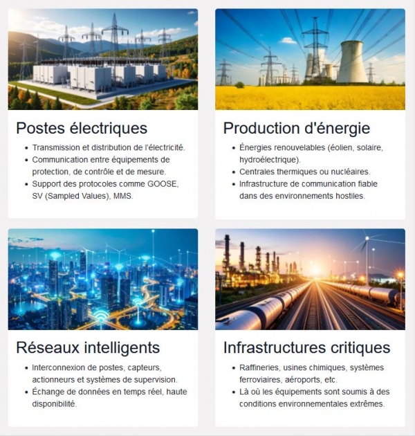 CXR joue un rôle stratégique dans le développement de produits conformes à la norme IEC 61850-3, en fournissant des solutions de communication robustes et adaptées aux environnements critiques comme les sous-stations électriques.